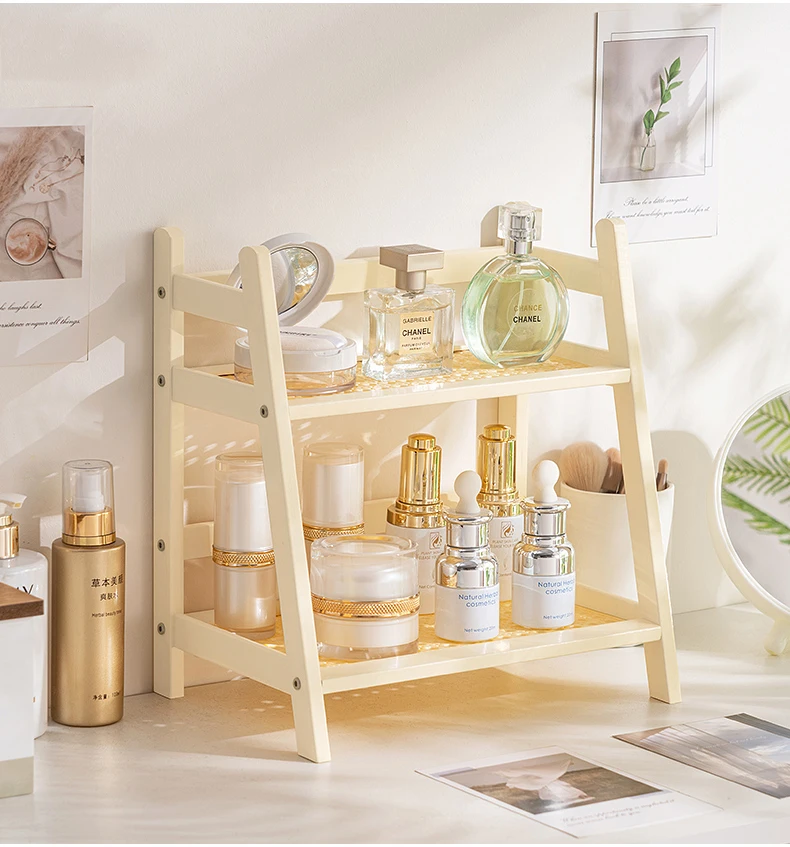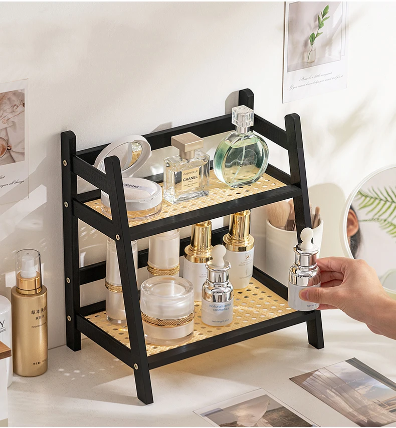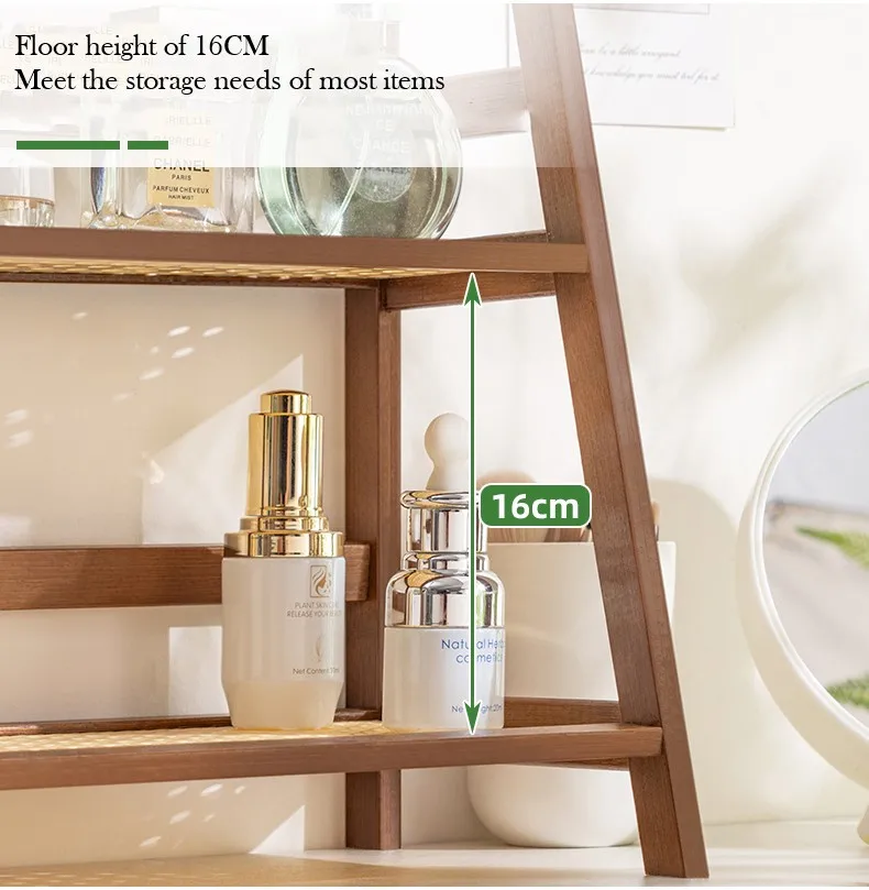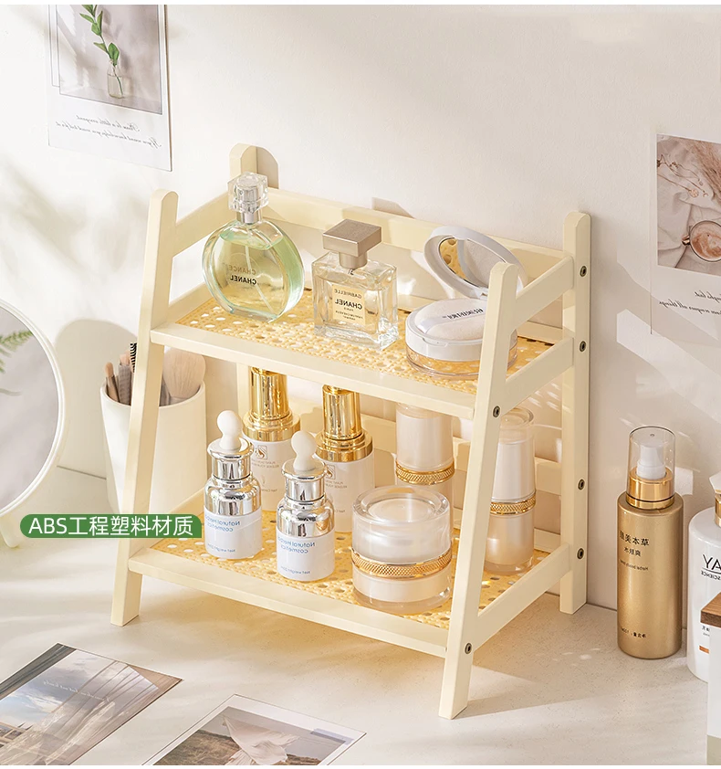 • This shelf organizer can be used organizer for bathroom countertop, or it can be used storage perfume,skincare,makeup. There is no fence on the side of the lower tray of the product, and it is more convenient to take items under the sink.