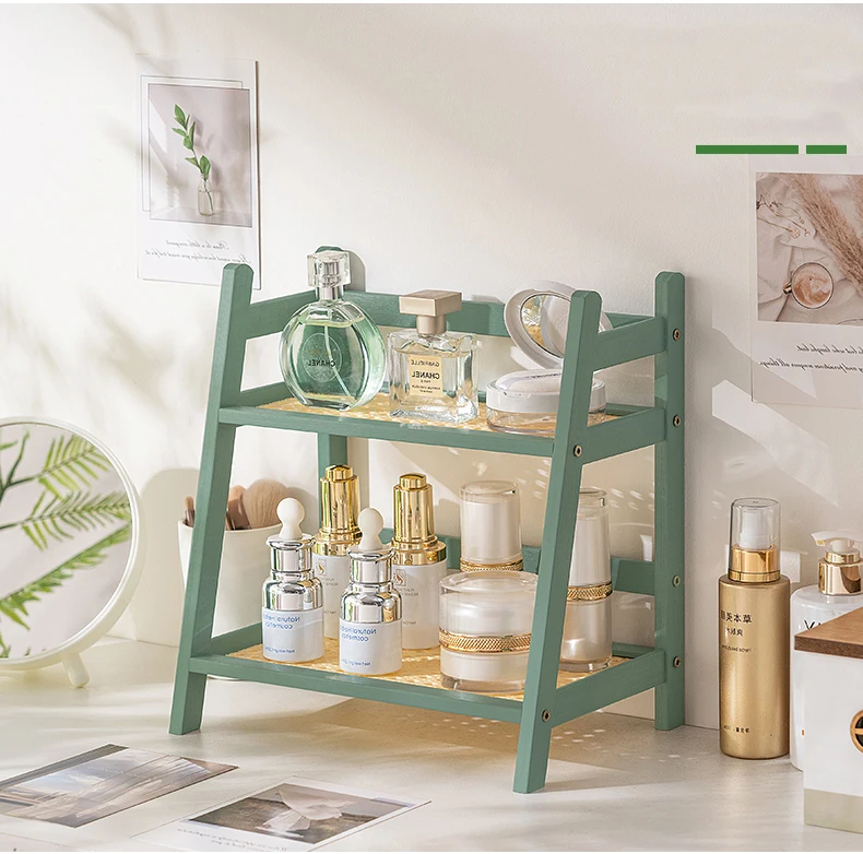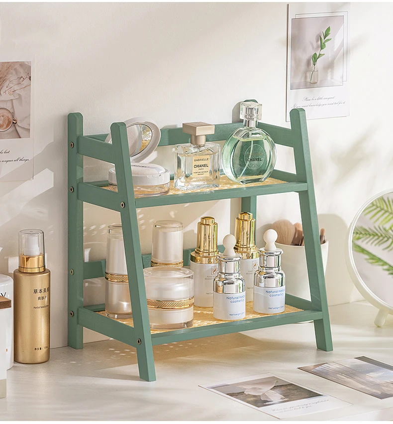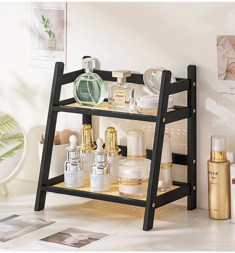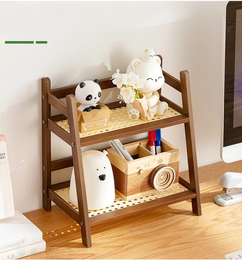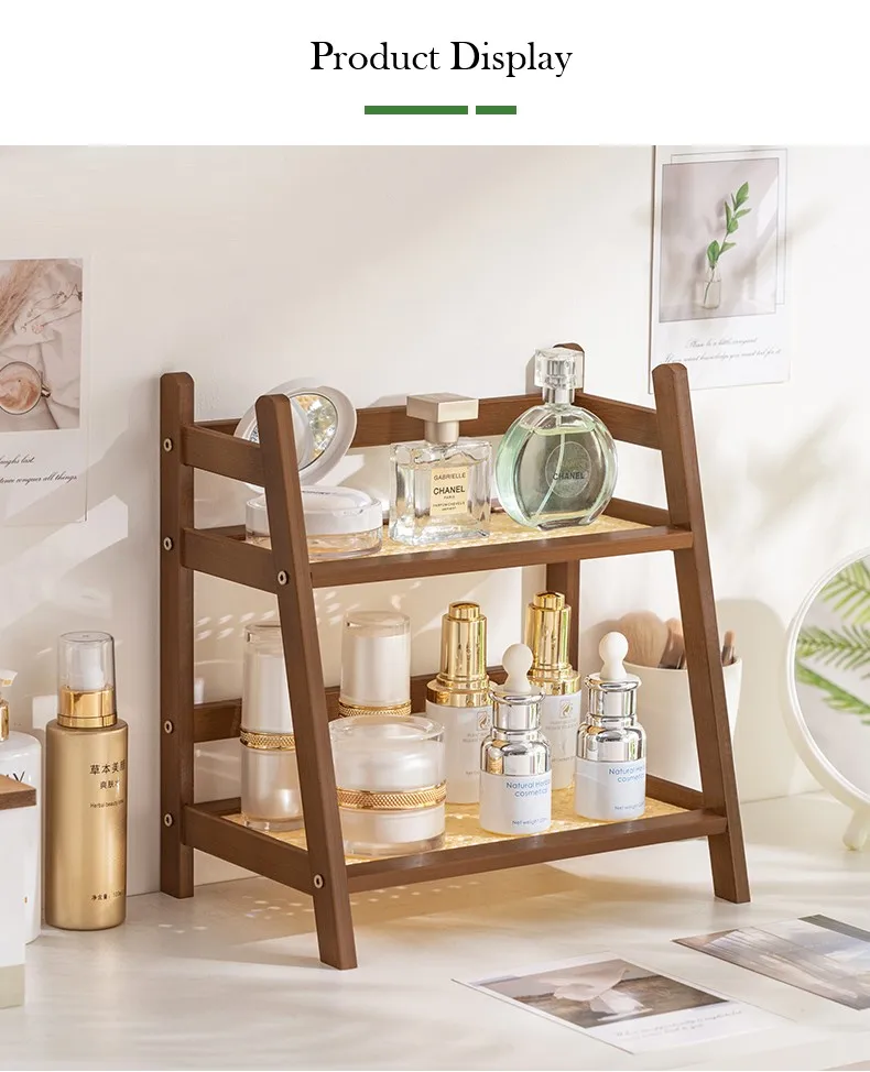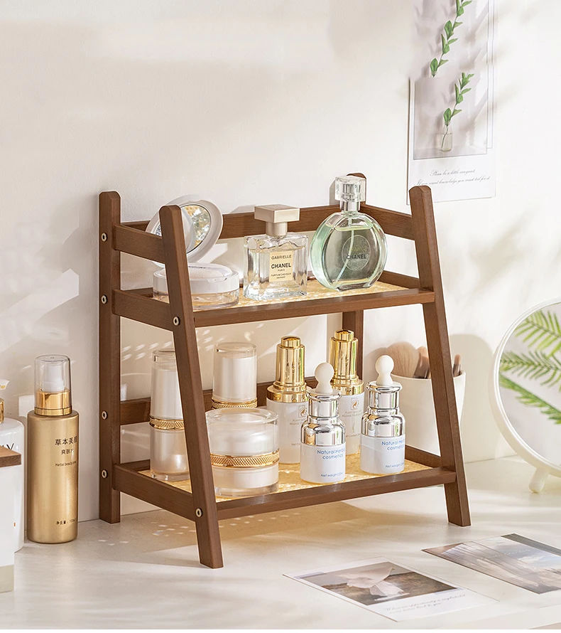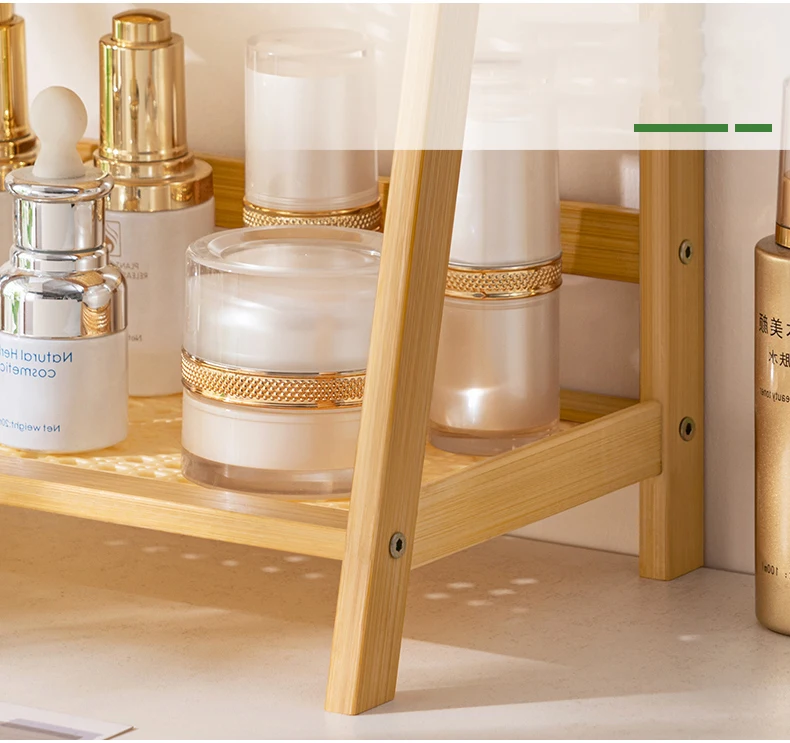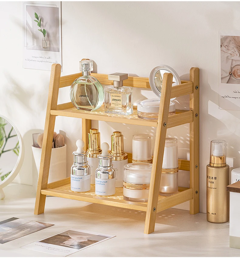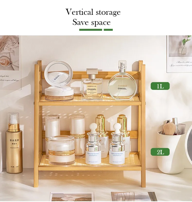 2 Layer Bamboo Wood Storage Rack for Kitchen Desktop Cabinet Organizer Display Rack Coffee Bar Counter Shelf Makeup Organizer