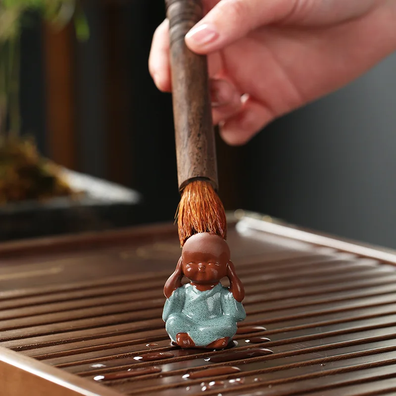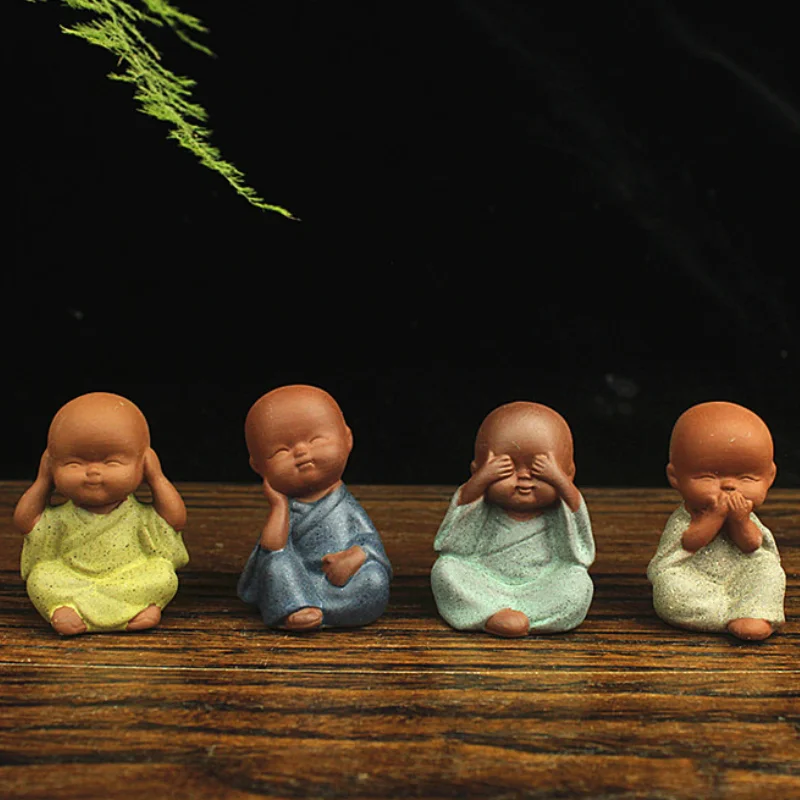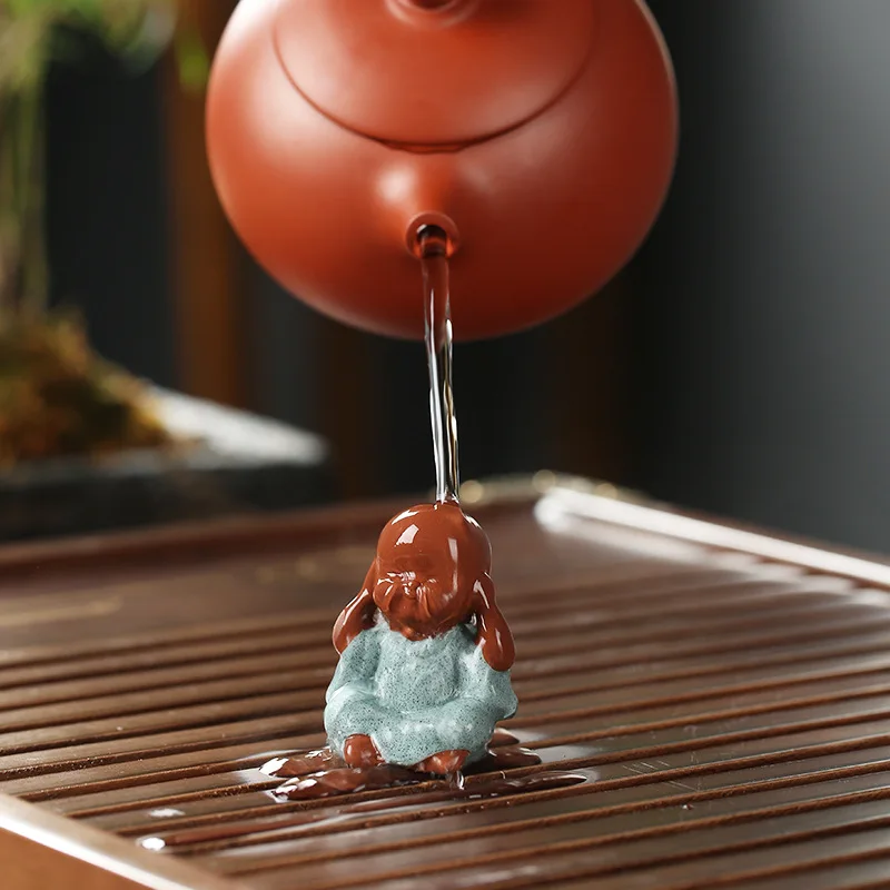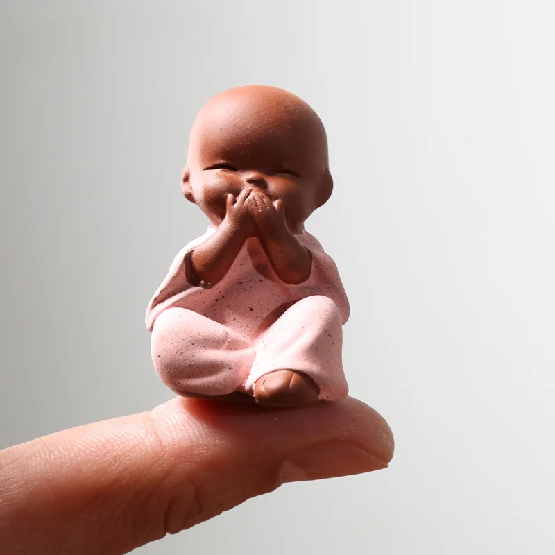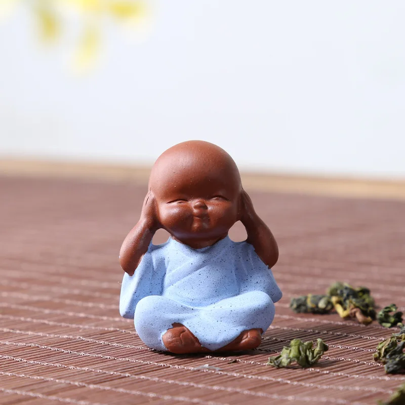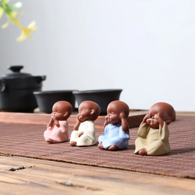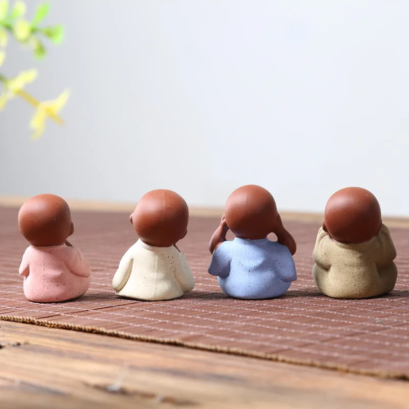 Cute Monk Figurines Ceramic Ornaments Small Buddha Statue Tathagata India Yoga Tea Pet Ornament Purple Ceramic Crafts Home Decor